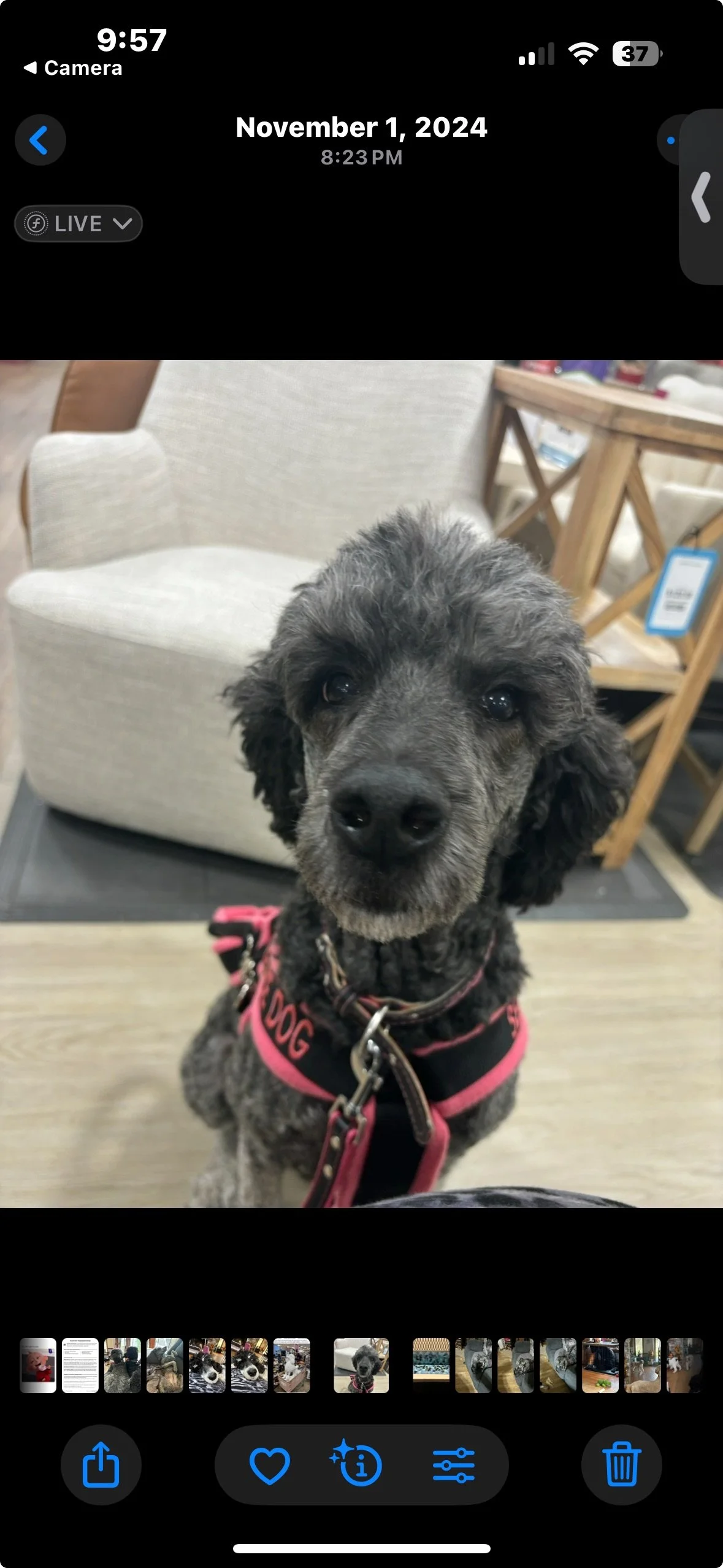 She has stunning confirmation and confident and affectionate disposition. Arie is now retired after having her last litter in February 2024. Arie is a retired psychiatric service dog.